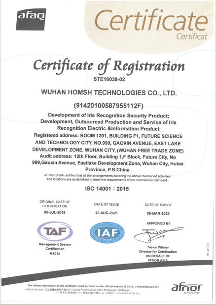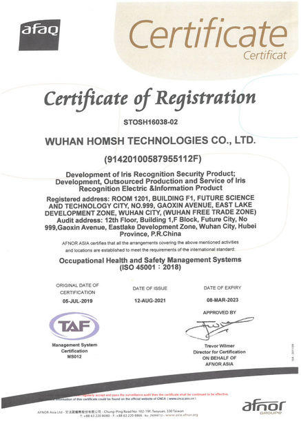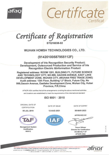 حصلت "هومش تكنولوجيز" على شهادات نظام إدارة الجودة، ومعايير نظام إدارة السلامة الصحية المهنية،معايير نظام الإدارة البيئية ومعايير نظام إدارة الملكية الفكرية الوطنيلقد اجتاز اختبار جودة المنتج من قبل الإدارات مثل مركز الاختبار الوطني لجودة منتجات نظام إنذار الأمن والسلامة (بيجينغ) ،مركز الاختبار الوطني لجودة منتجات أنظمة الإنذار الأمنية والسلامة (شنغهاي)، Guangzhou GRG Metrology & Test co. ، Ltd ، ومختبرات بيل في فرنسا.